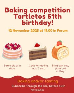 Are you ready to show your baking skills?👨🏼🍳 We invite you for the baking competition on November 12th for Tartlétos 51th birthday 🥳.